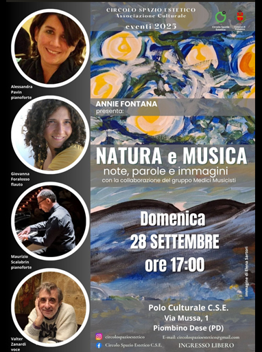NATURA E MUSICA note, parole e immagini - 28 settembre 2025 Polo Culturale Piombino Dese (PD) Concerto di medici musicisti "Natura e musica" note, parole e immagini. |